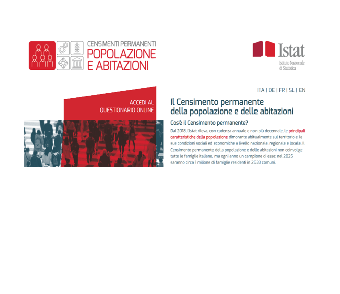 Il 6 OTTOBRE prende l'avvio il Censimento Permanente della Popolazione e delle Abitazioni. L'edizione 2025 coinvolge 2.533 comuni in Italia e circa 1,5 milioni di famiglie e individui.